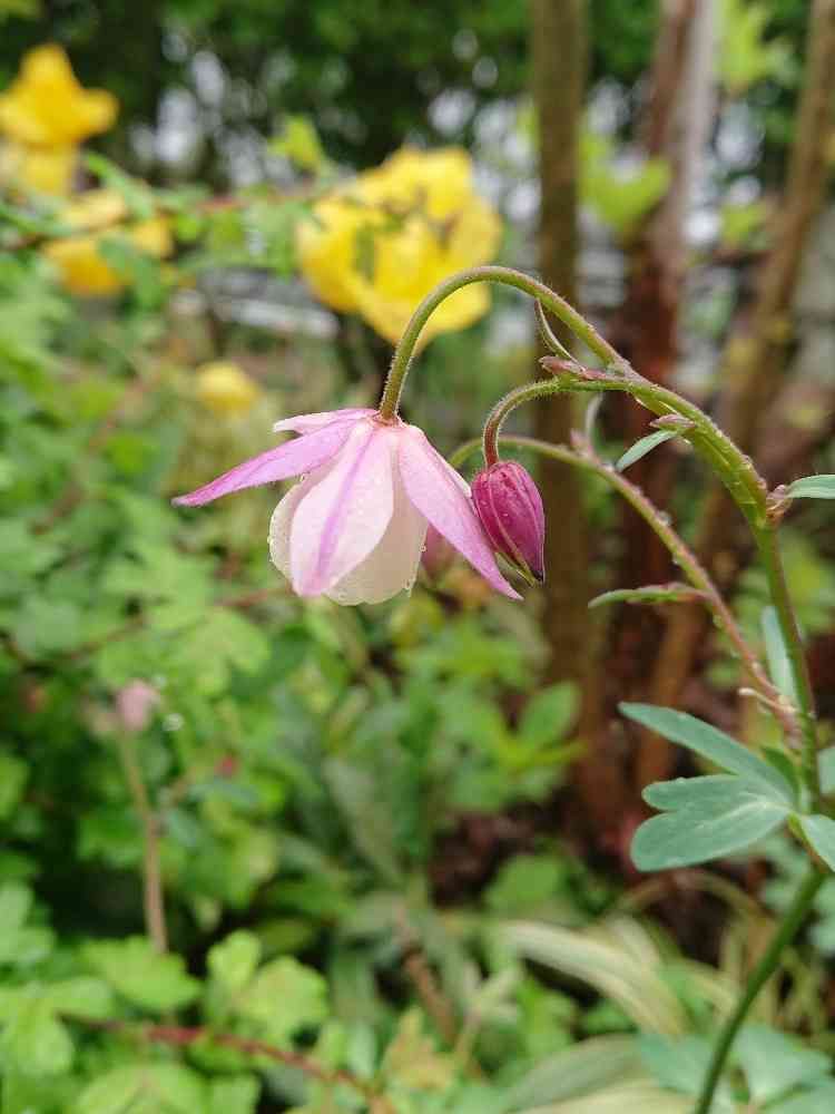いただいた風鈴オダマキ開花💓 うちにあるのはほんのり紫🎵こちらはほんのりピンク💓 うふふ🎵可愛いい💓