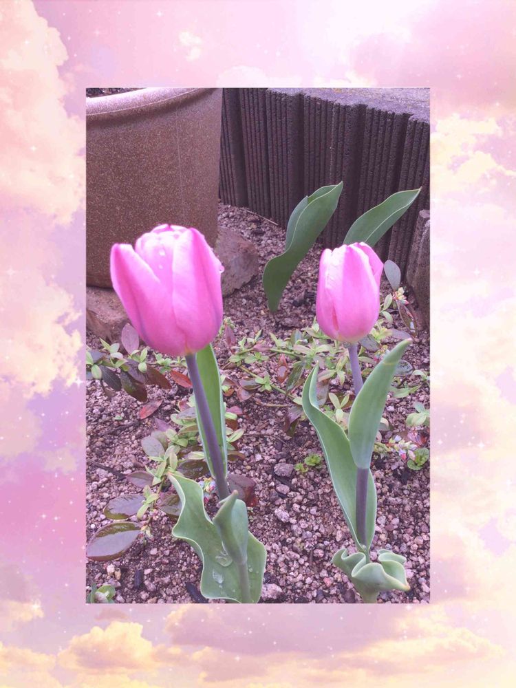 花壇のあちこちに植えているチューリップが咲き始めました🌷