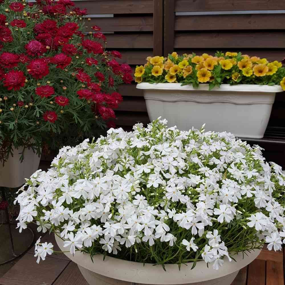 ベランダではあり得ないと思っていたけど、こうして植えることもできるんですよね、、、白の芝桜、こんもりがいいですね🤗