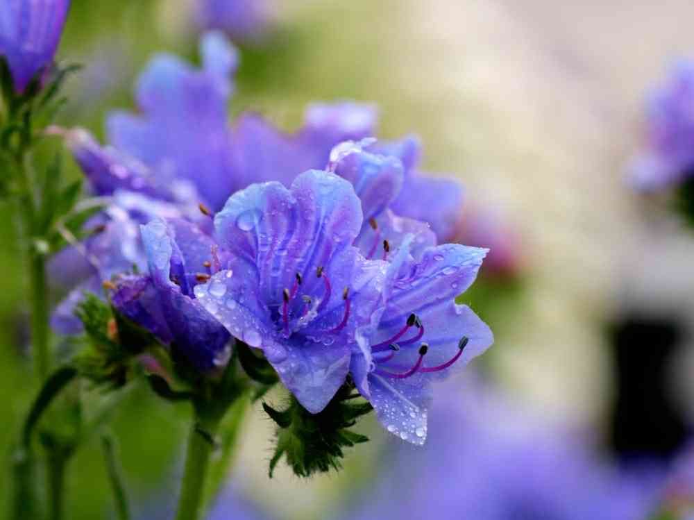 雨に濡れたこの青い花に釘付けになりました😊😆