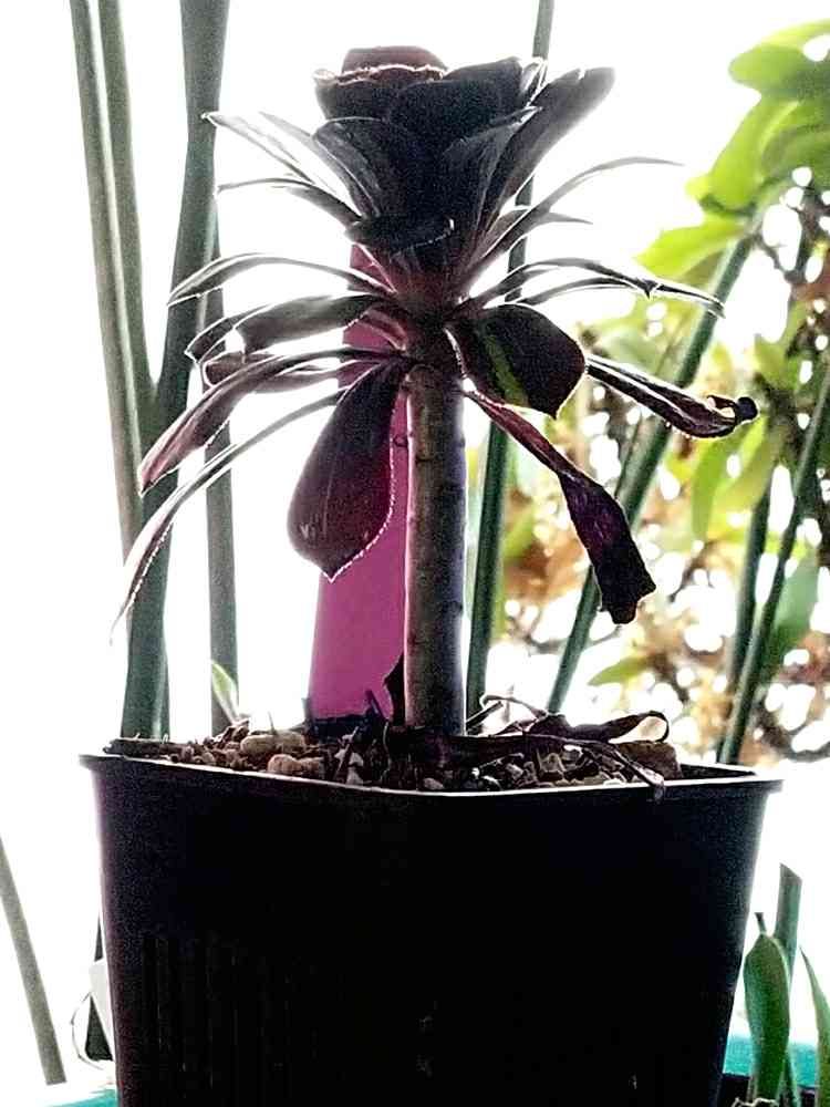ウチにあるアエオニウムはかなり乾燥気味な育て方です。もう少し水やりの間隔を狭めないと古葉がもたない感じです。