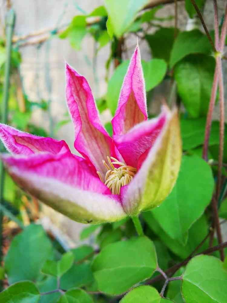 今朝まで蕾だったクレマチスがほころび始めたよ🌺🌺🌺