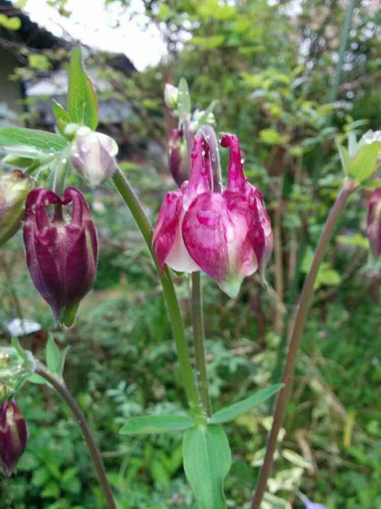 雨ぶりの中オダマキさんの蕾がもう少しで開花します♪