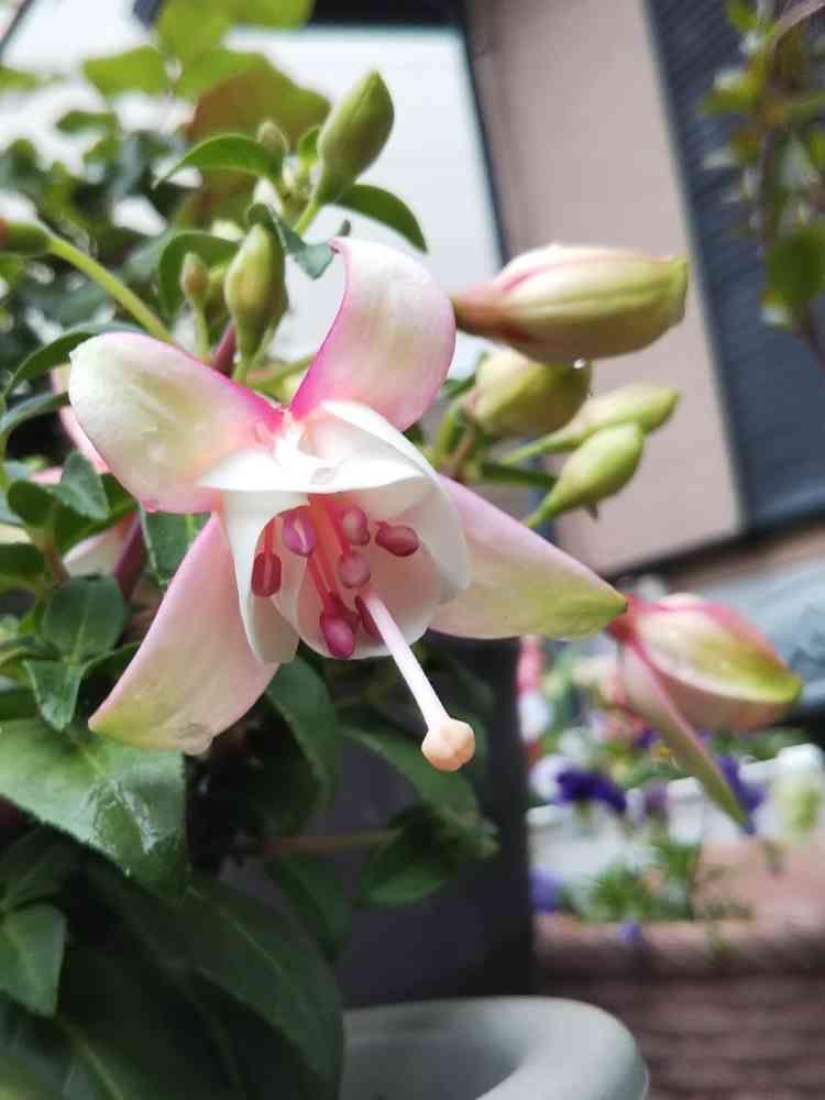 スーパーの苗コーナーで出会ったフクシアさん😆。小さな苗だったけど、大きくなって立派に咲いてくれました😍。