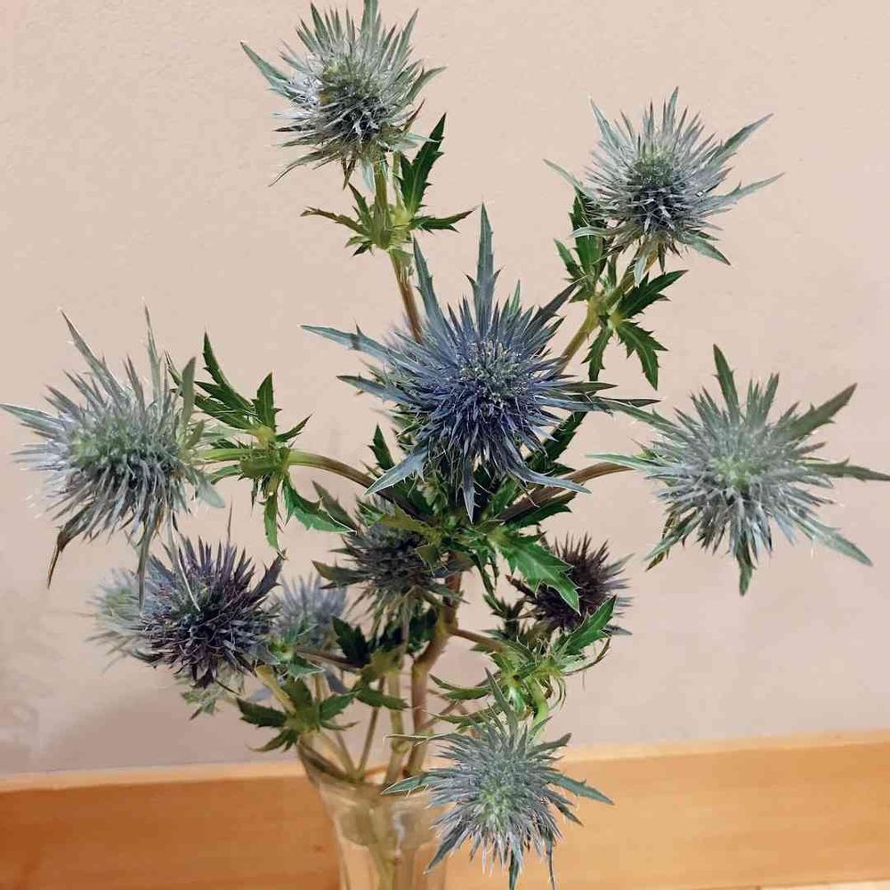 ルリタマアザミは地植えしてますが、オバケみたいな葉っぱになってます😅花は可愛いのにな😅