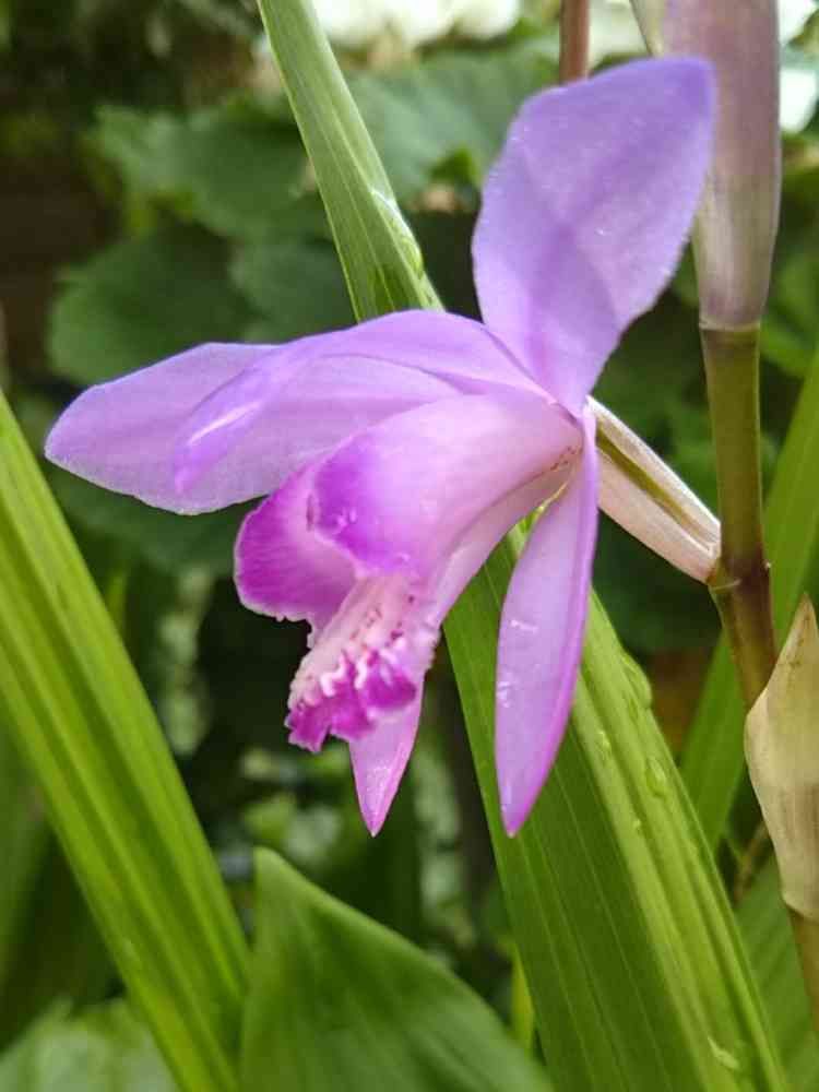 紫蘭が、1つだけ開花しました。自然の色とは思えないほど鮮やかな色合いですね。