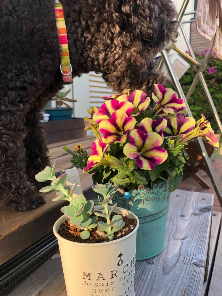 はちみつれもんさんのペチュニアクレイジーチュニア,花のある暮らし,わんこと一緒の投稿画像