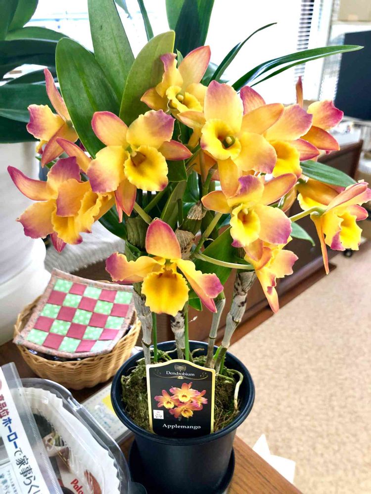 アップルマンゴーなんて美味しそうな名前と色合いのデンドロビウムと出会えて、いっときε-(´∀`*)ホッ