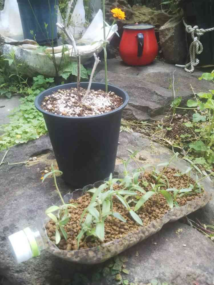 形も乱れて新芽も芽吹きだしましたんで剪定と挿し芽をしてみました。木化したした茎に新芽1本残しました。木化した茎に小さな新芽も見られます🎵