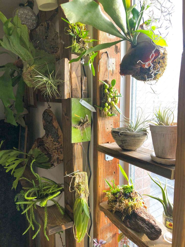 自宅の室内は狭いので、壁を使って緑を増やしてます。
