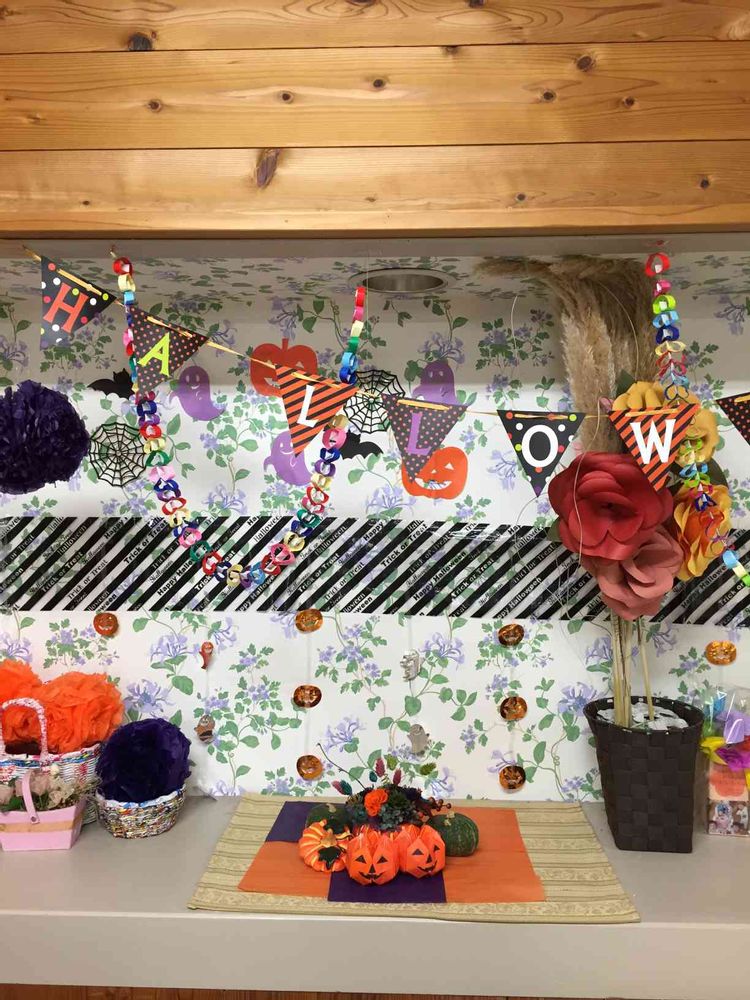 職場の飾り棚、ハロウィンコーナーにしました❣️