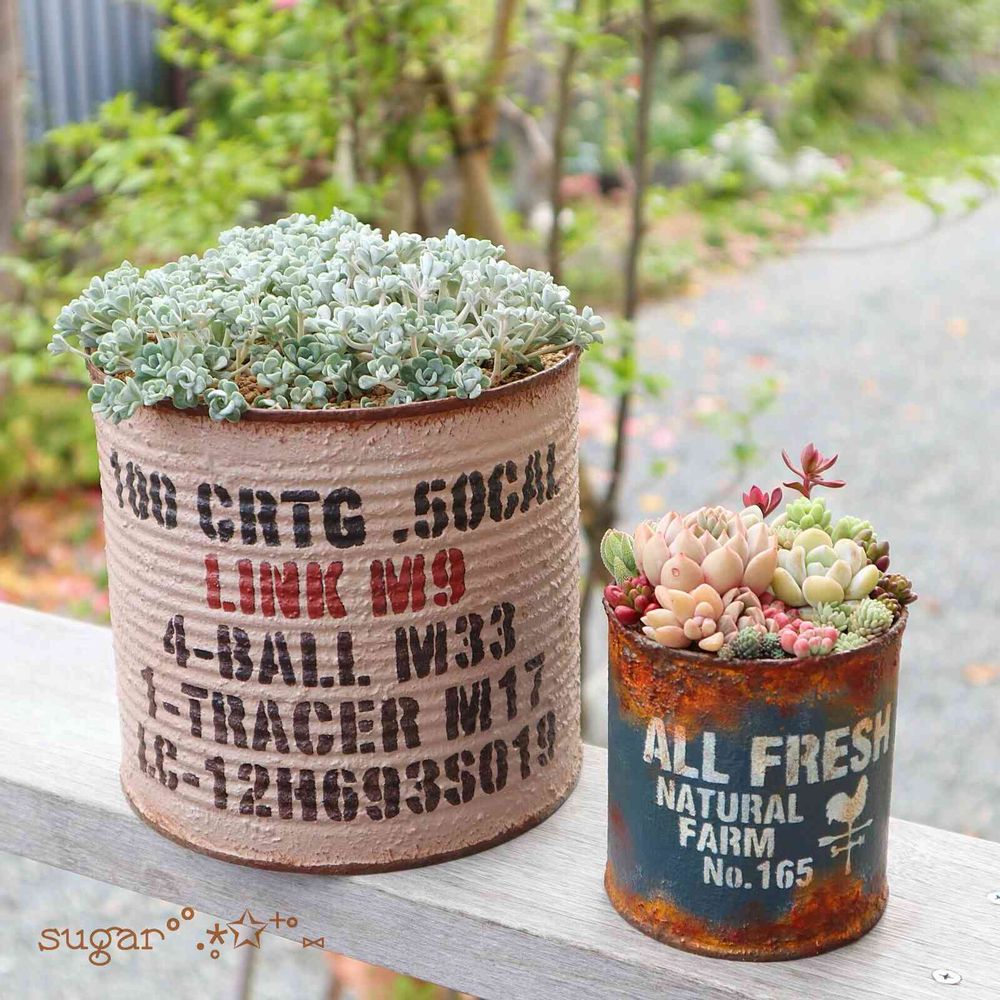 大きなリメ缶に白雪ミセバヤ素敵٩(๑>◡<๑)۶♡