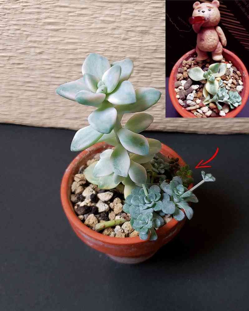 そして写真編集してるときに気付いたのですが、矢印部分に謎の多肉が?🌱