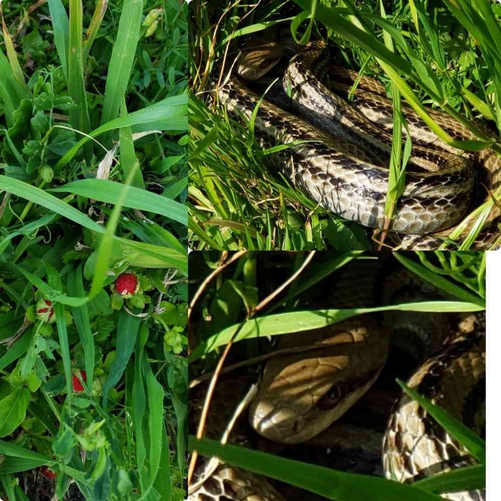 ヘビイチゴを見つけてシマヘビも見つけた、かっこいい