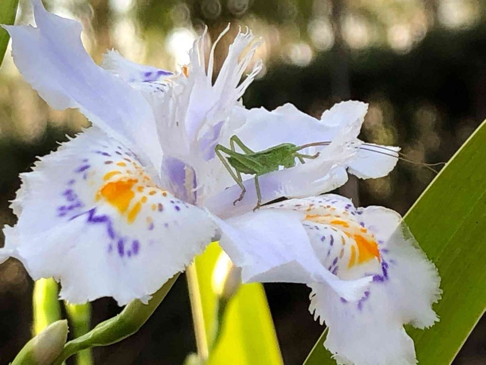 はなとしさんのお出かけ先,シャガとバッタ,花のある暮らしの投稿画像