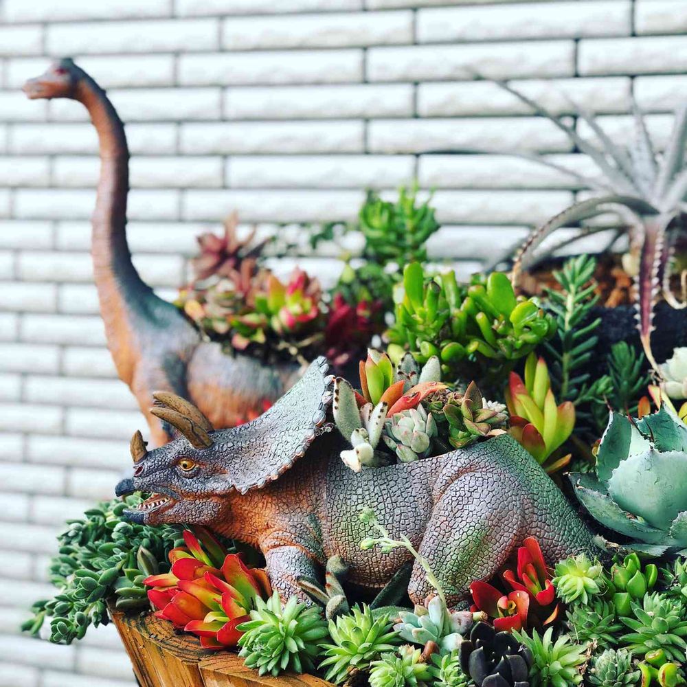 可愛いです💕お花や植物と恐竜さん達が