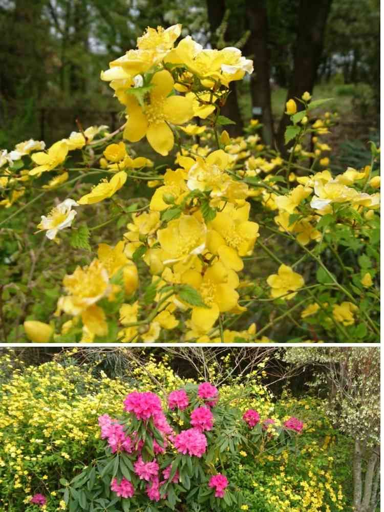 クマガイソウが咲いていた公園のヤマブキとシャクナゲのコラボが鮮やかでした‼️