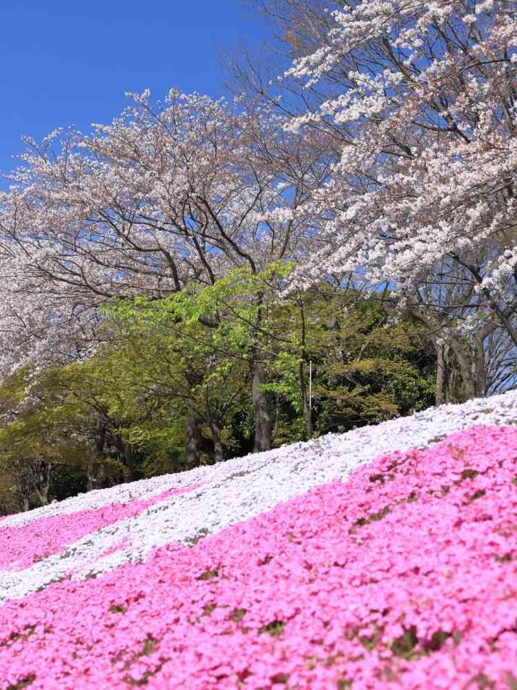 気持ちの良い青空に芝桜と桜とモミジのコラボですね😍😍😍