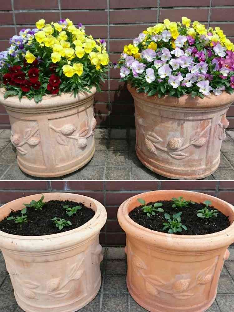 種から育てたももかビオラを12月に鉢に定植しようやく満開になりました💠思ってた以上にもりもりになりました☺️
