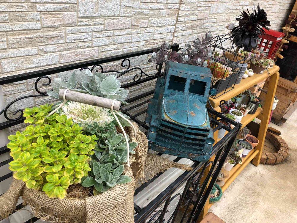 グリーン系でまとめた寄せ植え🌱いい感じになりました。