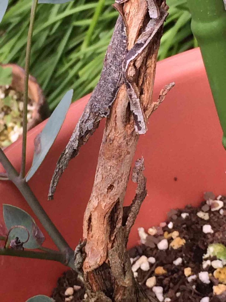 ユーカリの幹がこんなんになったんですが、大丈夫かな?