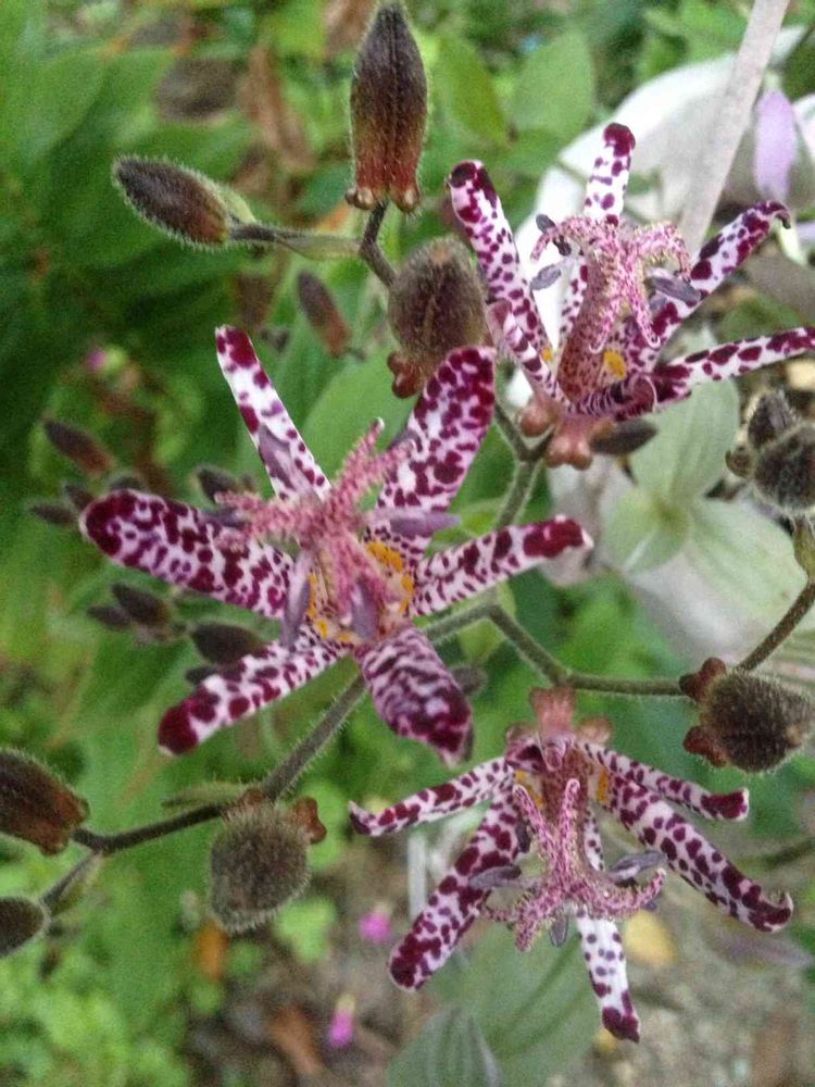山野草のホトトギスですね〜。白もあるらしいです。次には何が咲いてくれるのか楽しみですね。🎶