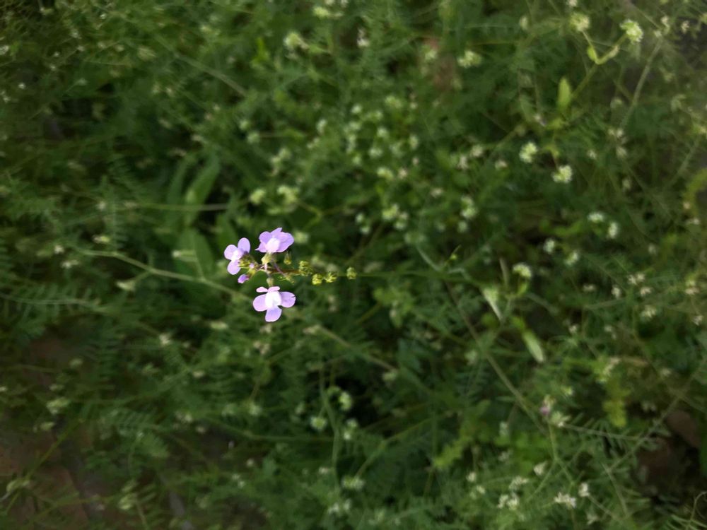 すっと茎が長くて、小さな紫色の 花弁4枚の花でした