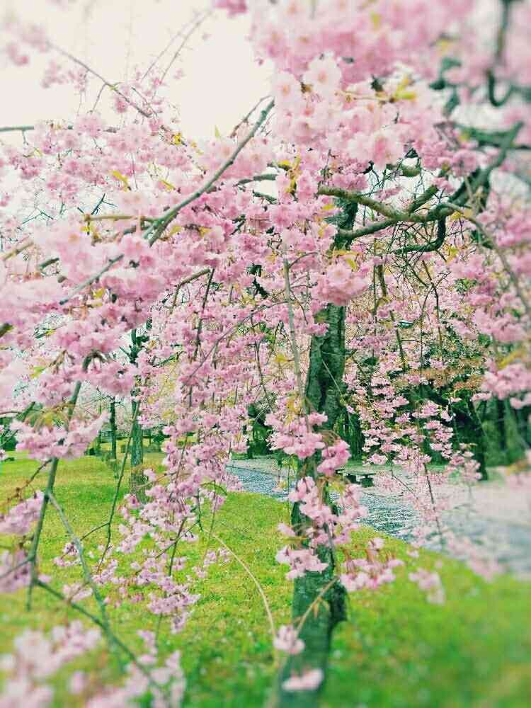 冷たい雨の中、しだれ桜がしっとりと咲いていました🌸🌌