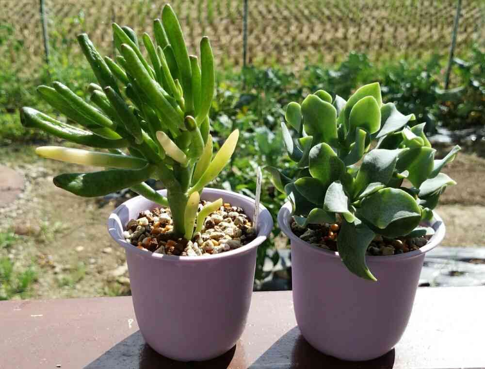クラッスラ属の斑入りアポロ(ゴーラム錦)とブルーリボン。