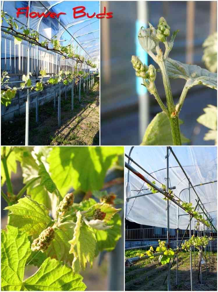 新枝の花芽、こいつ等を大切に育てて、大きな房にする半年間が始まる。🌼🍇🌿⏳😊