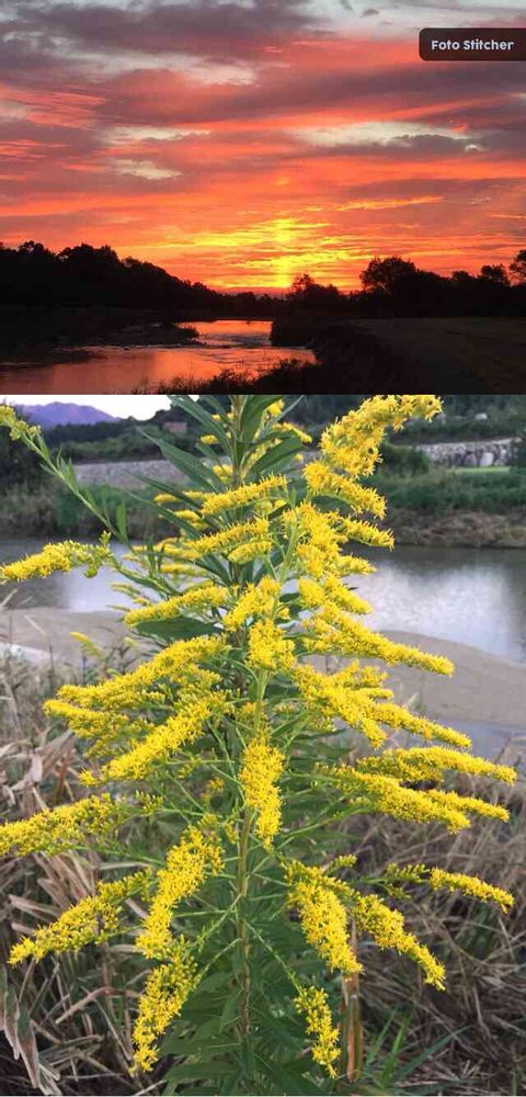 朝焼けと黄色のコラボ、嫌われ物の雑草でも綺麗ですね🤗💕🎵