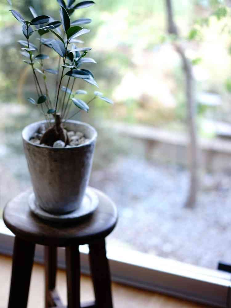 古道具屋で一目惚れして購入した自慢のスツールに置いてるガジュマル君。(自己満です 笑)