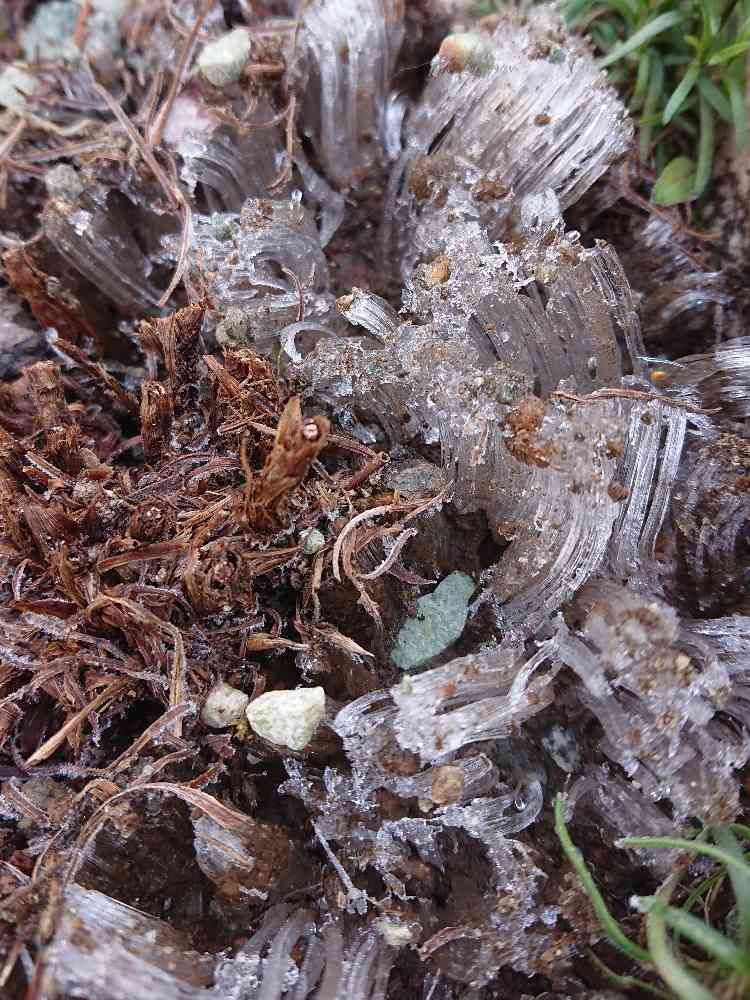 ジプソフィラのプランターの中!今朝の霜柱\(◎o◎)/