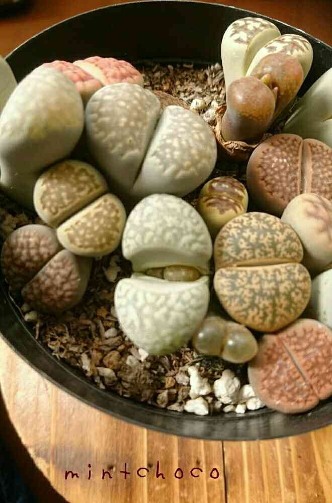 リトープスうちにもデビューしたんですけどこんなに並んでる姿も可愛いですネ❣️前はなんじゃこれは〜?と思ったのですけど、今は可愛くて仕方ないです😊✨