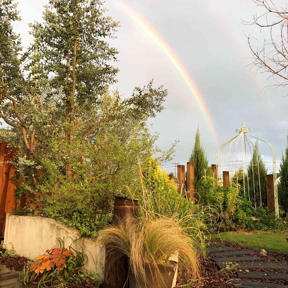 さん 1人黙々と雨の中草取りした甲斐がありました(笑)大人になっても虹をみるとワクワクしますね😁💖