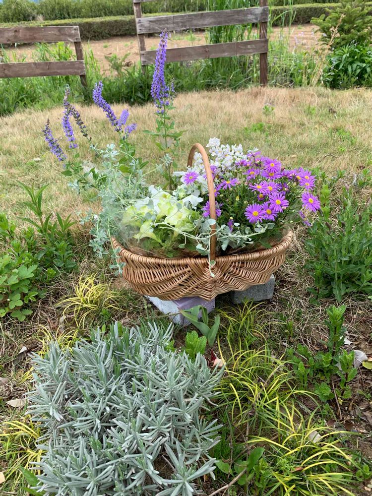 EVER GREENちゃんのオープンガーデンに行ってきました。素敵な籠寄せ植えがかわいくて、パチリ。
