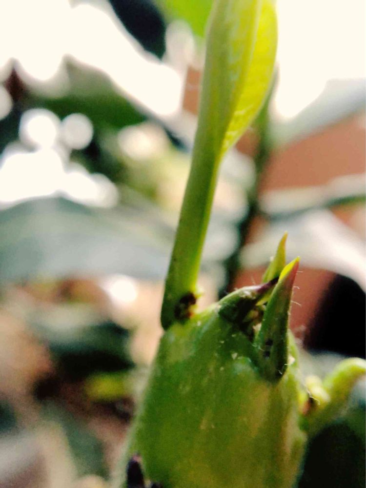 タネから育て5年目にしてやっと開花してくれて、それから大きくなり過ぎたので屋内に入れられず挿し木にて2年目の初夏にどこかの誰かに2本は連れ去られ😢この子は残りの1本なのです🌱