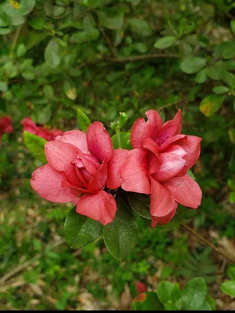 この花は ヒラドツツジの八重かもしれません。😽薄いピンクもあるようですが、この色もあります。