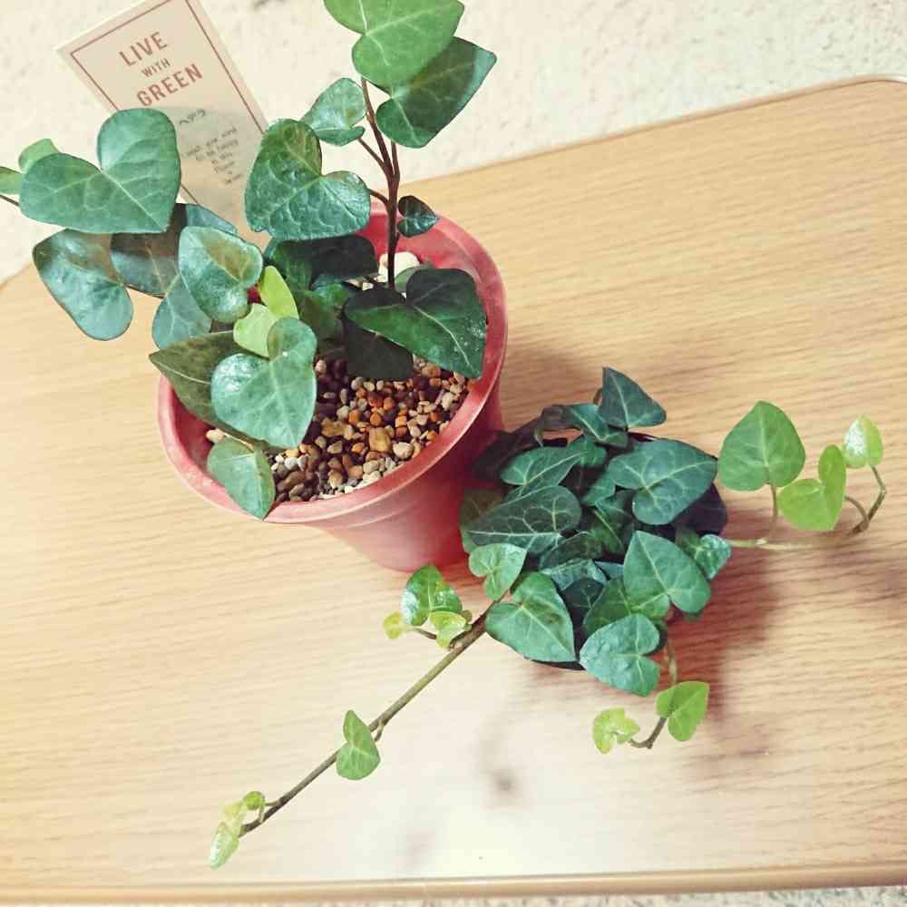 プミラと同じお店でちいさなハートのアイビーもお迎え。元気いっぱい!赤い鉢の子は前にお迎えした子。大きめの鉢に植え替えしたんだけどまだ幼かったのか根が全然なかった(^^;
