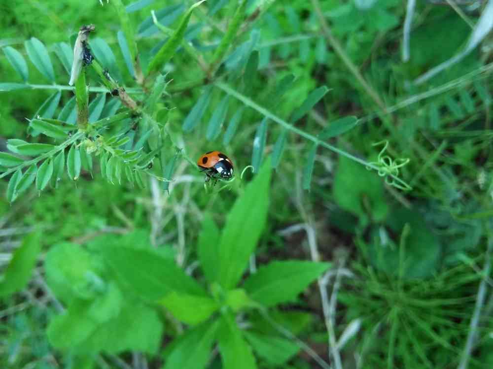 カラスノエンドウのツルにしがみつくテントウムシ🐞