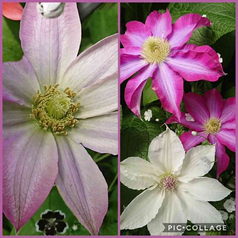 クレマチスの白い方、冬の旅も咲きました!こちらは真っ白で20cmもあり存在感バツグン(’-’*)♪赤い方の柿生は一回り小さいけどこちらも目立つキレイ色☺️
