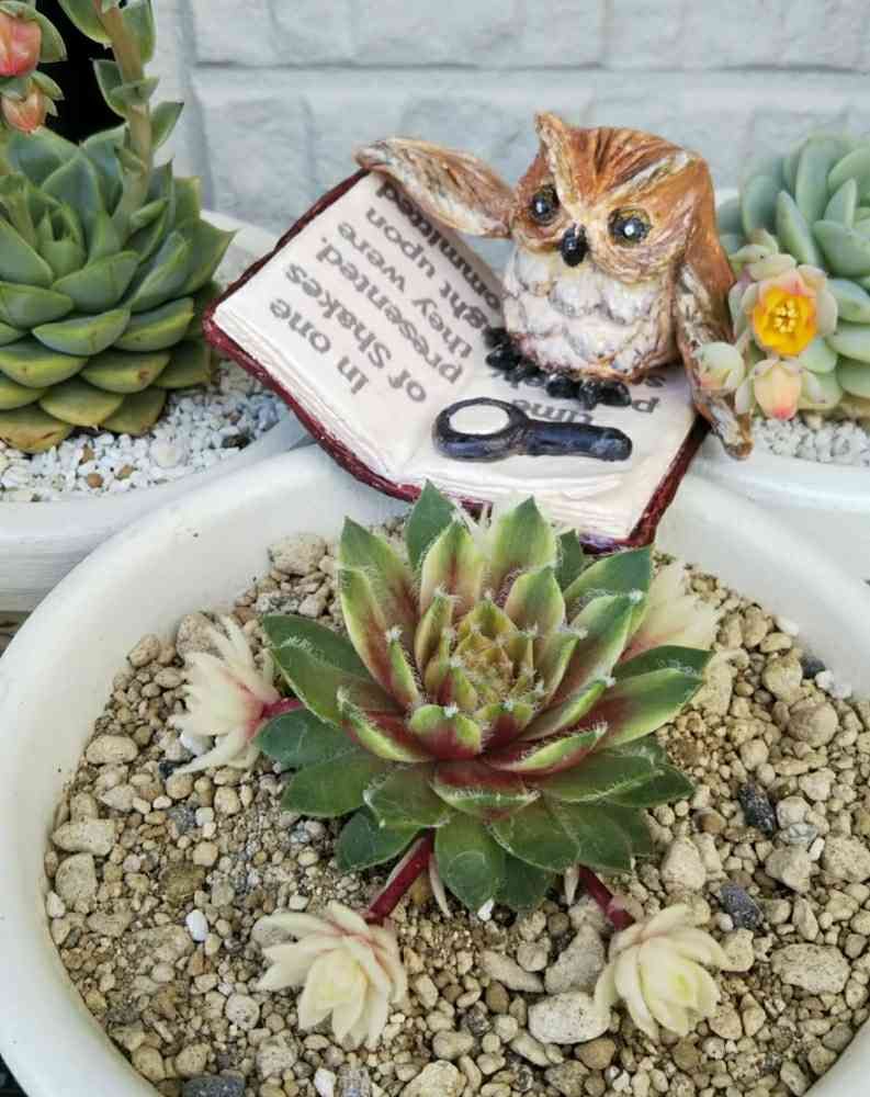 石粉粘土で作ったフクロウ🦉と、先週のイベントでお迎えしたセンペルビウム バニラシフォンです❣️