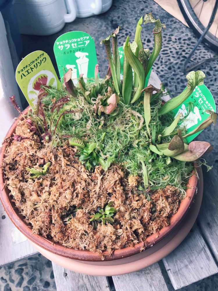 食虫植物の寄せ植えを作ってみました。寄せ植えは成長してからが本番なので、今後が楽しみです(*'▽'*)