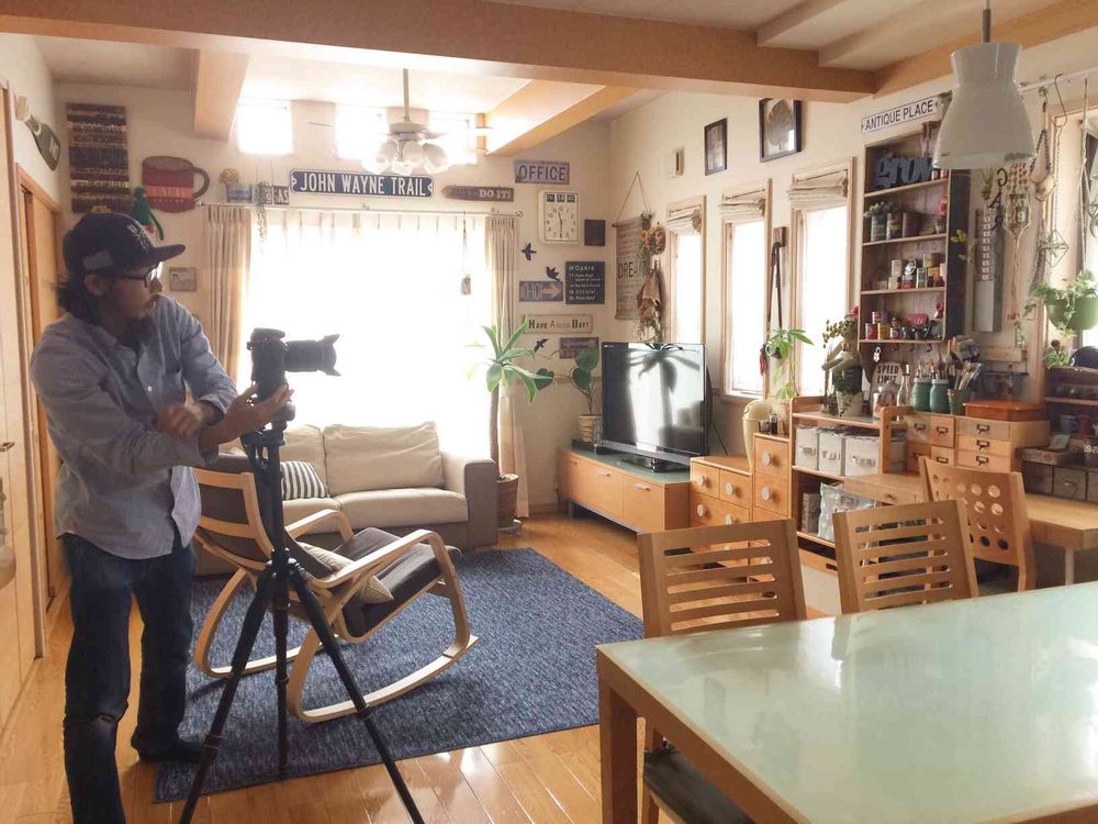 自分でコツコツと作り上げてきた愛着ある庭とリビングをカメラマンOさんが丁寧に撮ってくださる姿に感激。