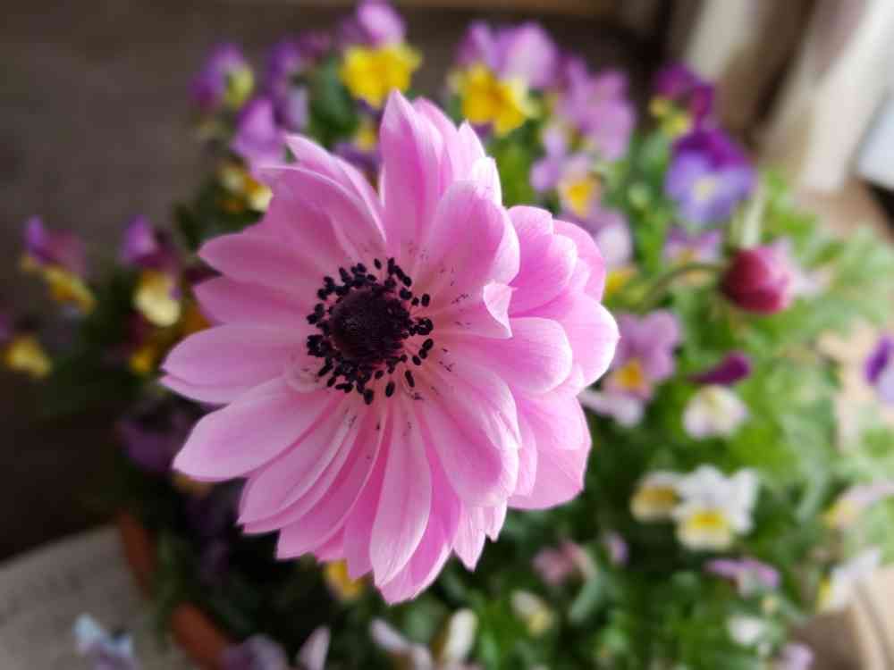 だいぶ前に撮影したものですが、ビオラの赤ちゃん5株とDAISO産のアネモネを仕込んだ鉢です。このあと同じ色のお花が3つくらい咲いたかな?ミックス球だから他の色も咲いてくるかと思ったらこのピンクだけでした。