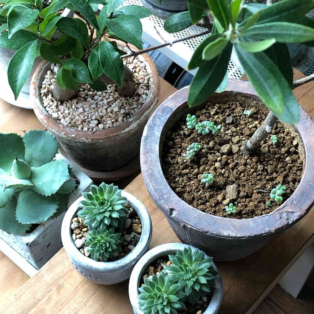 オリーブの木の足もとに根付いた多肉さん❁︎