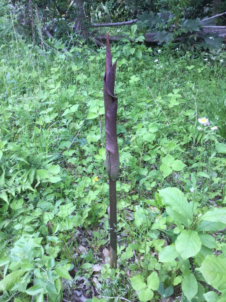 コンニャクの花って知らない人多いです。私も大人になってから気が付きました。初めて見たときは余りに大きくてビックリ😱1m以上高さがありました!
