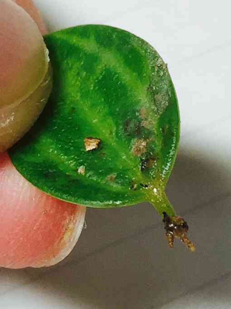 ペペロミアの葉挿しから根っこがついにでました(*^^*)