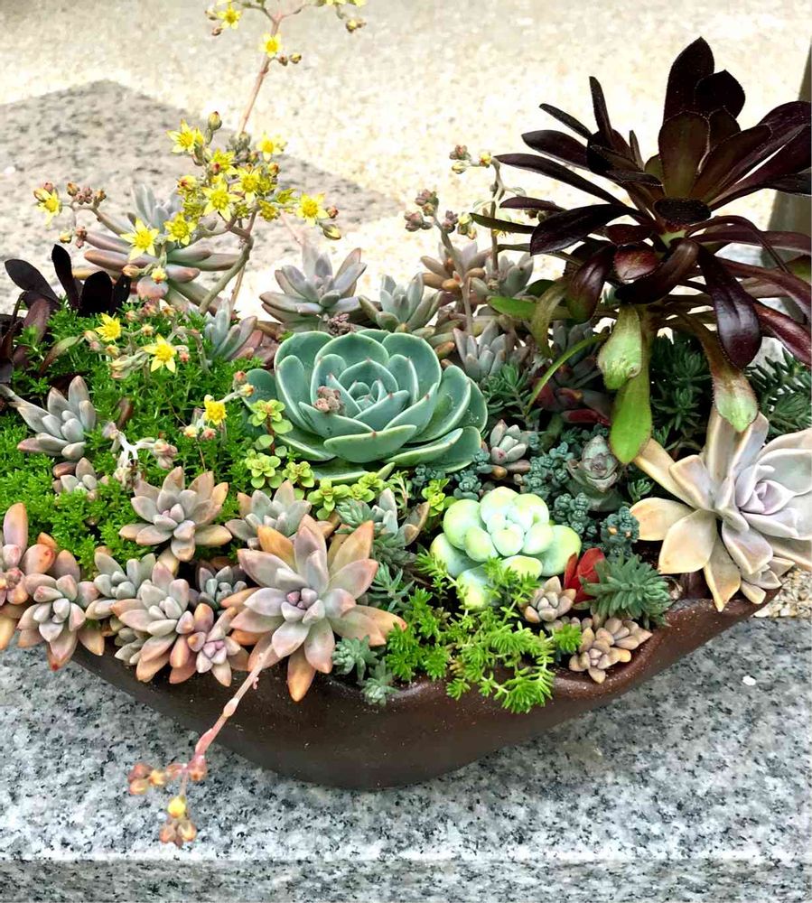 以前寄せ植えした可愛い多肉達モリモリしてきました❣️黒法師が🦚みたいです。