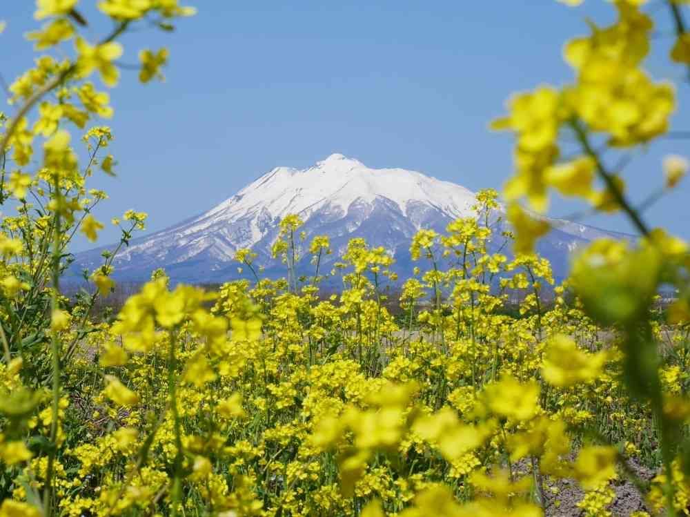 『どこかで岩木山撮りたい』って見つけたのが畑の真ん中の菜の花たち🌻
